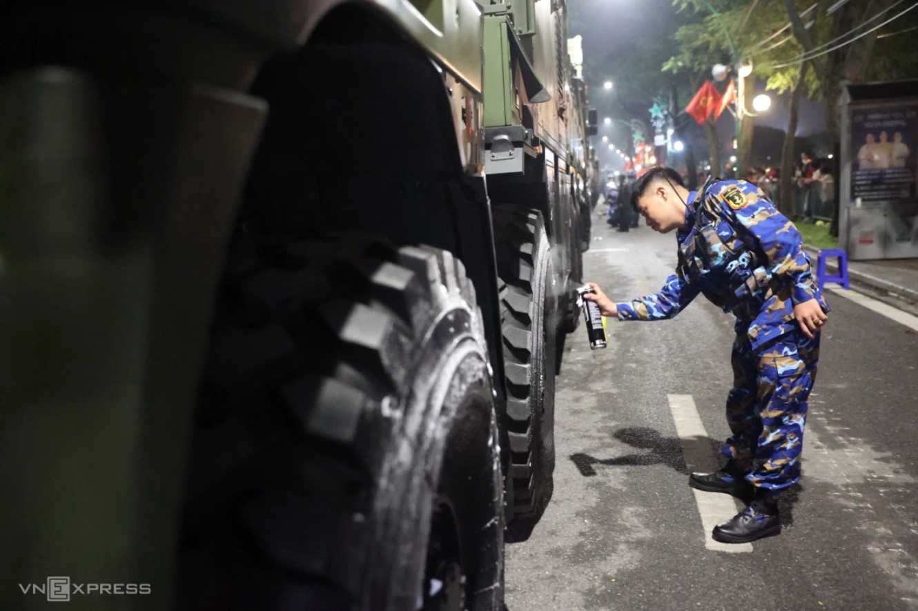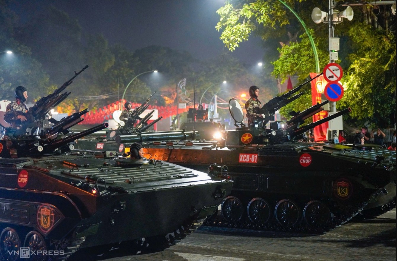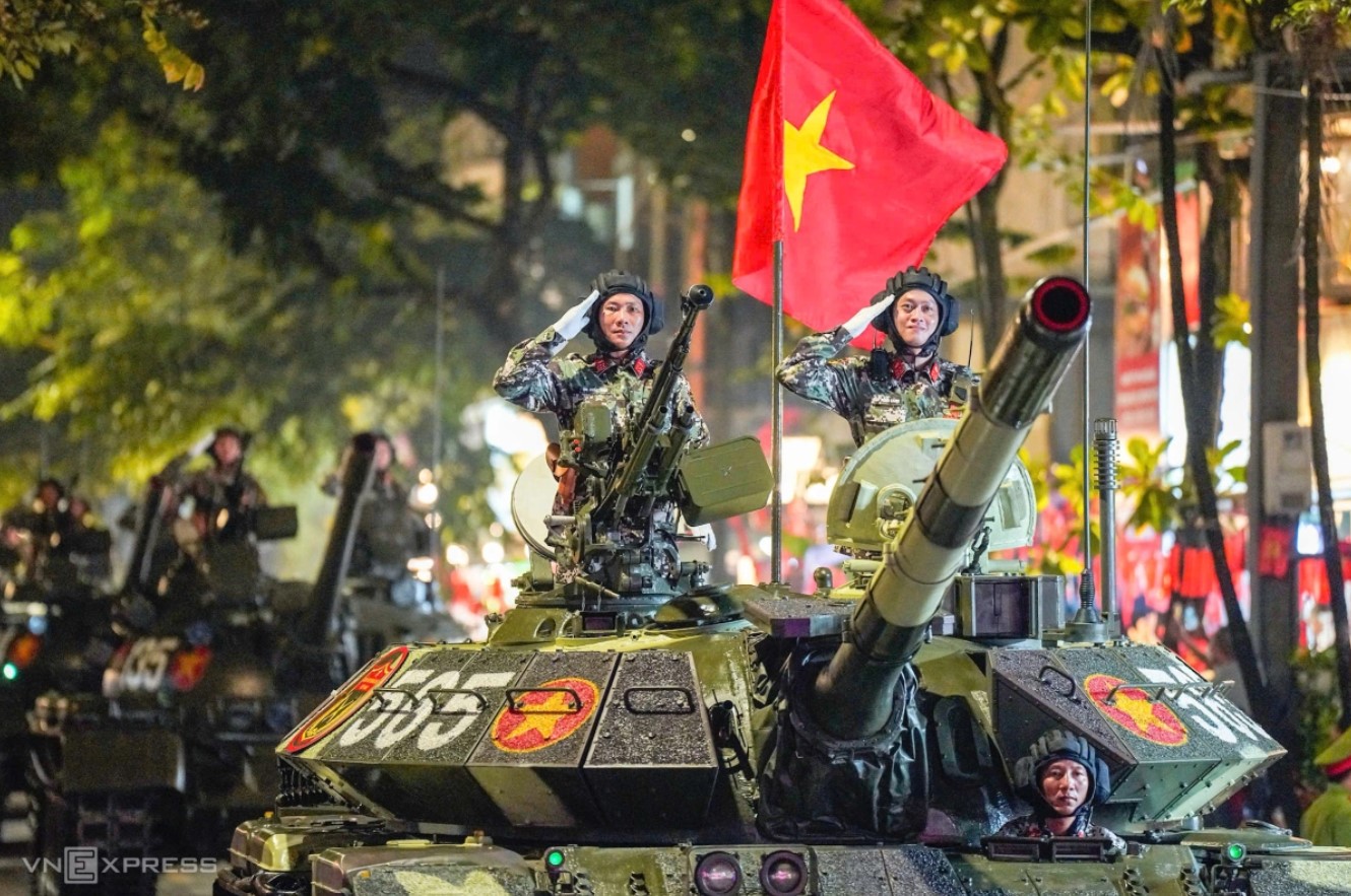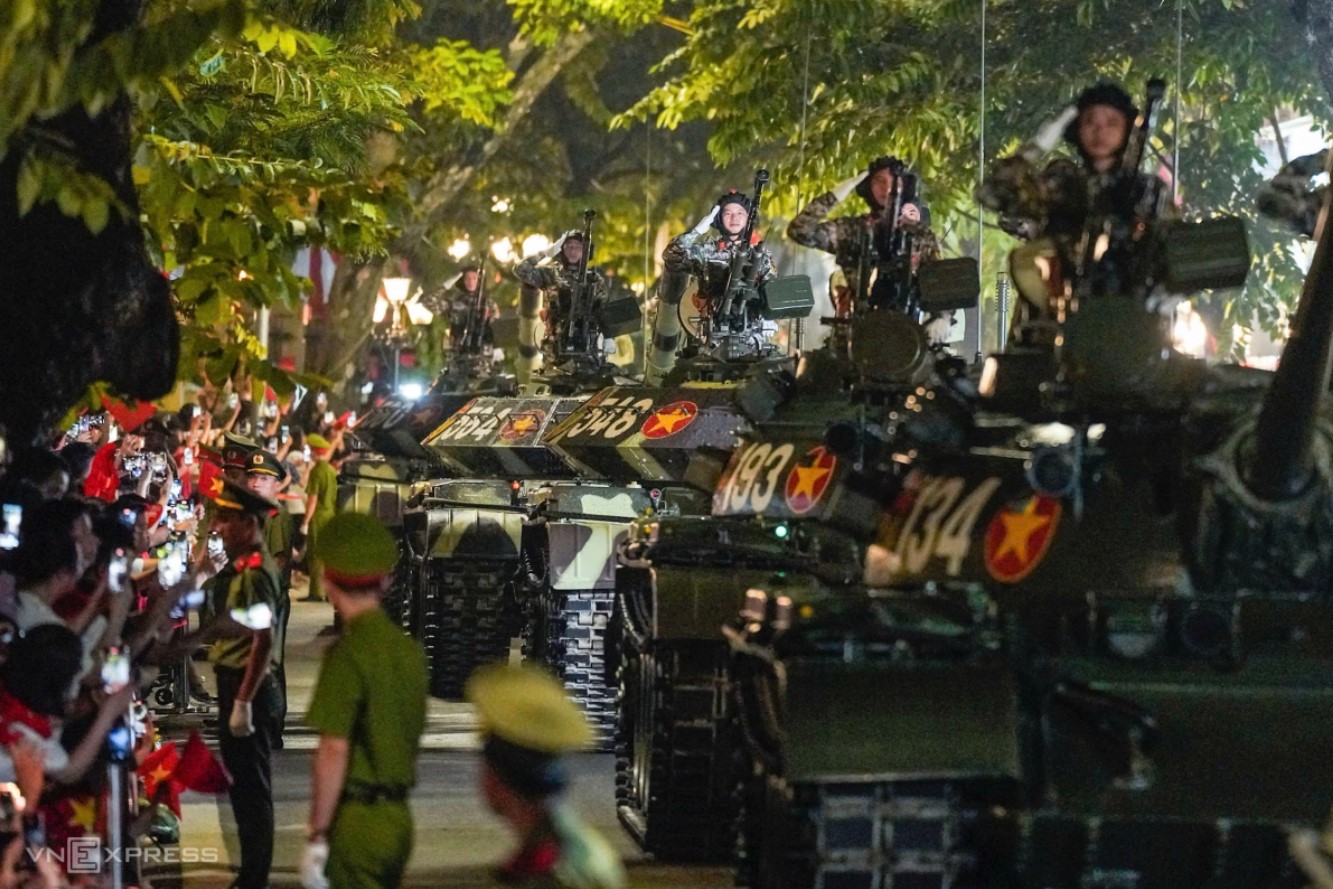 Đoàn xe tăng tham gia duyệt binh đi ra đường Cửa Bắc để về nơi tập kết. Hàng nghìn người dân thức trắng đêm trên tuyến đường này đã reo hò vang dậy cả tuyến phố.