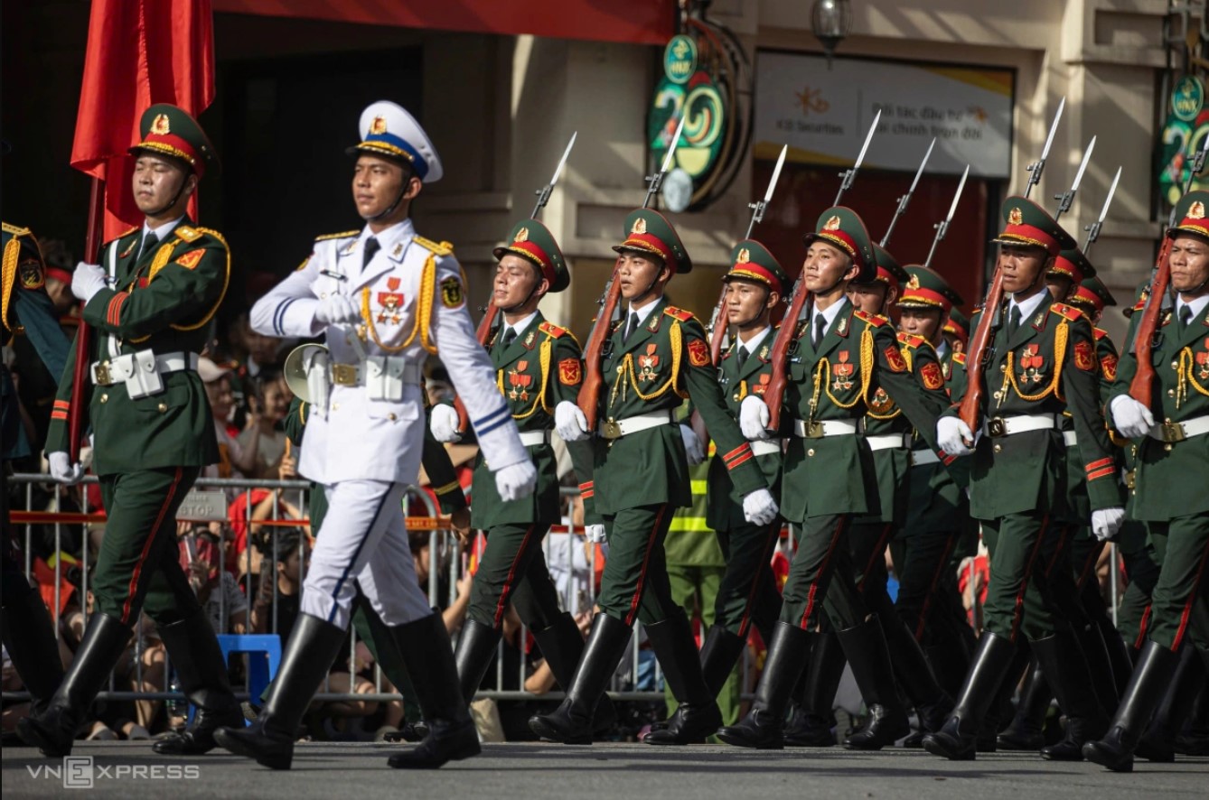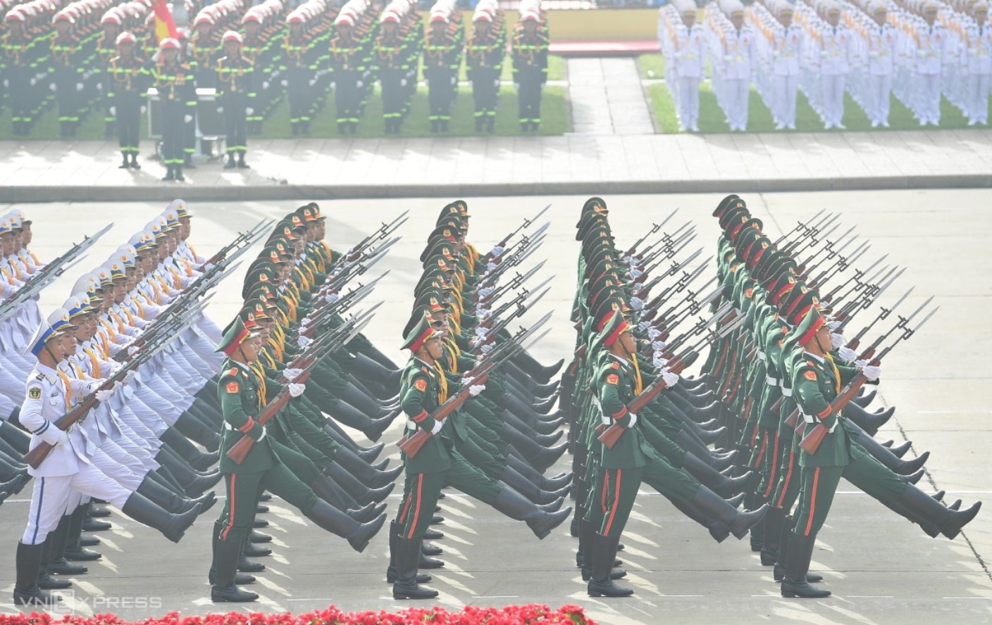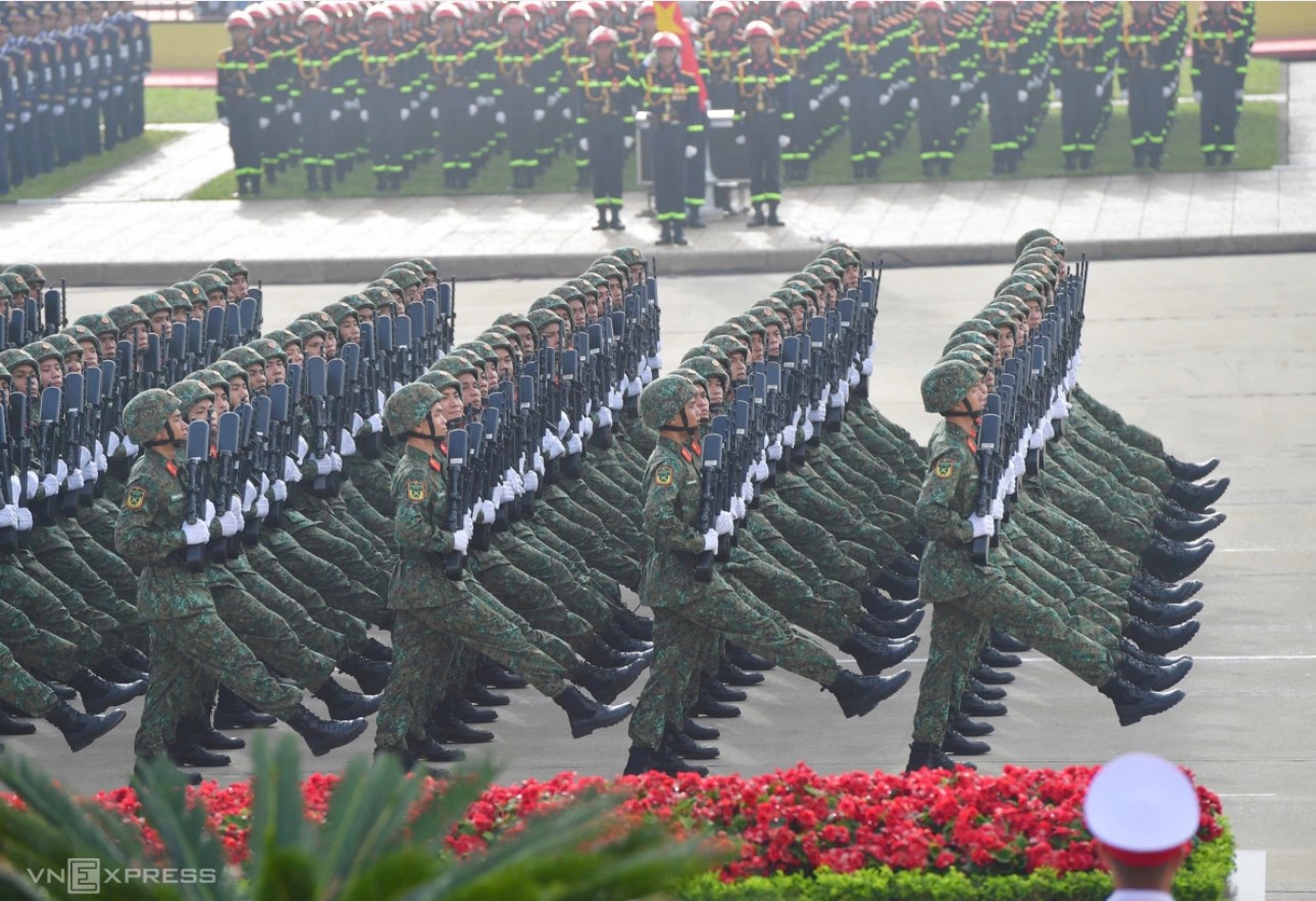 "Nghiêm. Lễ diễu binh diễu hành bắt đầu", khẩu lệnh của thượng tướng Nguyễn Văn Nghĩa, Phó Tổng tham mưu trưởng Quân đội nhân dân Việt Nam âm vang, mở màn diễu binh diễu hành.