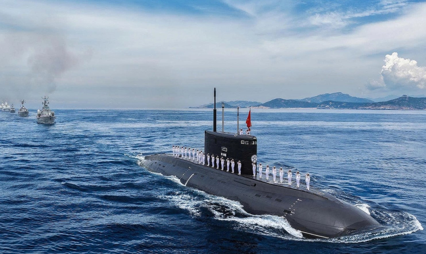 Tàu ngầm Kilo trong đội hình diễu binh biển.