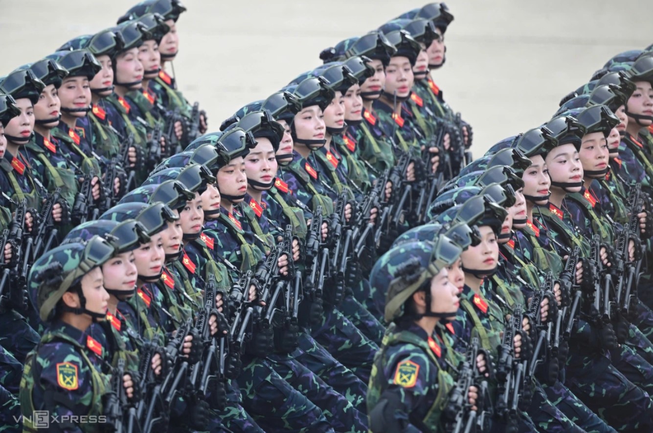 Nối tiếp là 22 khối Quân đội nhân dân Việt Nam: từ khối danh dự ba quân chủng, sĩ quan Lục quân, Hải quân, Phòng không - Không quân, Biên phòng, Cảnh sát biển; đến các lực lượng đặc thù như nữ Quân nhạc, nữ Quân y, sĩ quan hậu cần - kỹ thuật - công nghiệp quốc phòng, học viên các học viện, nhà trường.