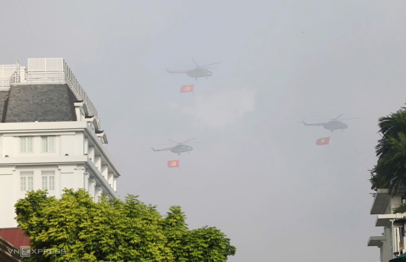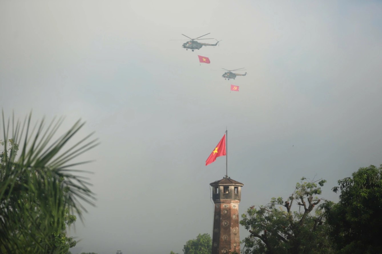 Biên đội trực thăng kéo cờ Đảng, cờ Tổ quốc về Ba Đình.
