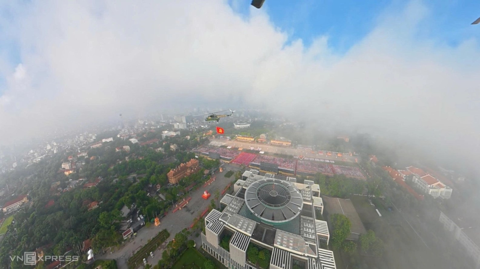 7h09 AM - Trực thăng bay xuyên mây về Ba Đình