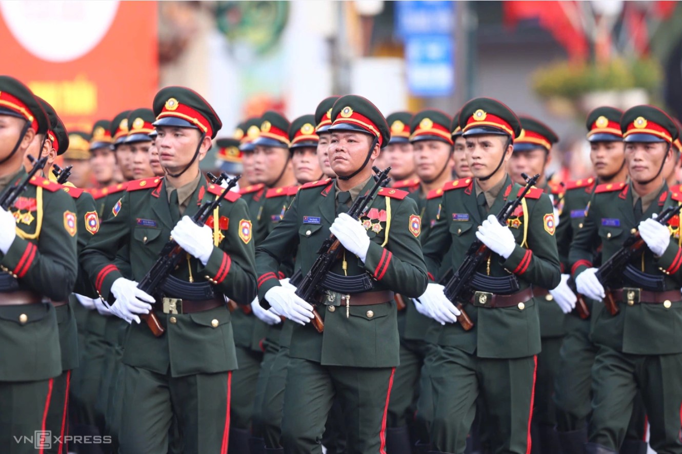 8h15 AM - Bốn khối quân đội nước ngoài qua quảng trường Cách mạng tháng Tám